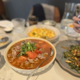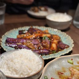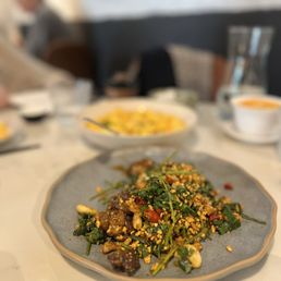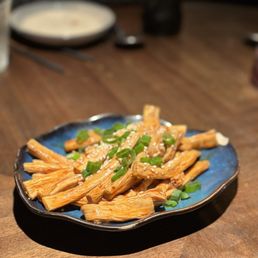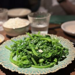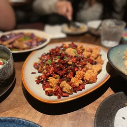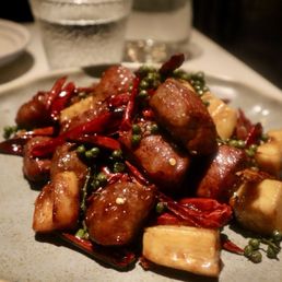 -  Author: Jenny Z.Very nice ambiance, with some star dishes and live jazz music in the back. EXTREMELY fast service too... our appetizers were served almost right away and our mains quickly followed... we were in and out within an hour. We ordered a LOT of food (16 dishes for 7 people lol) but it actually ended up being enough food... we finished almost everything! For small dishes: -Cucumber (5/5): such a highlight. so crunchy and refreshing -Woodear mushroom salad (4/5): really delicious, but not my favorite woodear mushroom salad I have ever had -Spicy cabbage (5/5): also a standout. The cabbage was crunchy and super refreshing -Dan dan noodles (3.5/5): good, but not outstanding in any particular away. Noodles are thin with a nice texture. -Sichuan noodles (3.5/5): same (also nothing special)... these are definitely spicier and it is nice that it is a cold noodle, which is refreshing for a summer noodle. For mains: -Tomato soup with fatty beef (4/5): I was pretty excited about this and it did not disappoint! The soup was slightly thicker than I expected but the fatty beef was delicious and loved how the enoki mushroom and glass noodles really soaked up the broth -Pea shoots (3.5/5): solid, but can do without. nothing special. -Numbing Rib Eye Cubes (5/5): honestly this was a standout dish. the rib eye cubes were so tender! -Egg tofu with enoki mushroom (5/5): this dish was also so standout. The egg tofu was lightly crisp on the outside and it was so soft, almost a custardy texture in the inside. Must get this dish... haven't seen it at other Chinese restaurants -Cabbage with soy sauce (5/5): loved this veggie... cabbage was crunchy and garlicky. Just wish garlic was a bit more fried or in smaller pieces so it is more pleasant to eat -String beans (5/5): also loved the string beans here. Not too oily, had that a nice bite with the lightly fried exterior -Crab Tofu (3.5/5): It was good, but I feel like I had better crab tofu at other restaurants. It is very soft though -Chili Fried Chicken (3/5): I'm not a big fan of fried chicken, but other people really enjoyed it. The pieces of chicken are really small, but it is juicy when you get a good bite. -Duck fried rice (3/5): rice is cooked well, but there could have been more flavor to this dish -Cumin Lamb (2.5/5): was not the biggest fan of this dish.. definitely have had better cooked lamb. Could have been more tender and chewy. Very flavorful though. -Steamed fish with green peppers (2/5/5): also not a huge fan of this dish. Fish was good, but not nearly as tender and soft as I was hoping for. Also, not too much flavor. Overall, the restaurant gives similar vibes as Uluh in Manhattan, but with a larger and more lovely interior with live jazz!